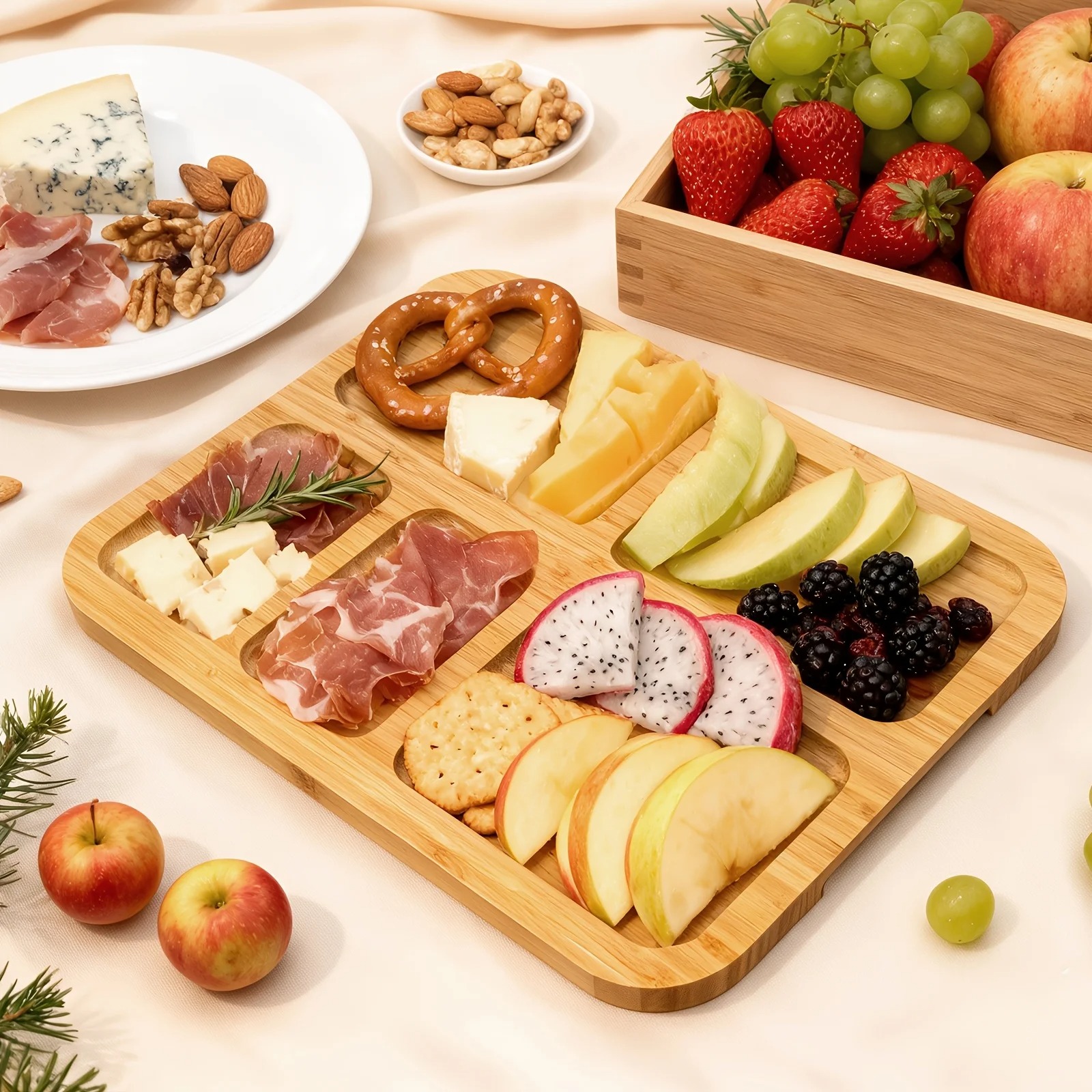 ️ 6 Divided Compartments – Perfect for cheese, fruits, nuts, snacks & more